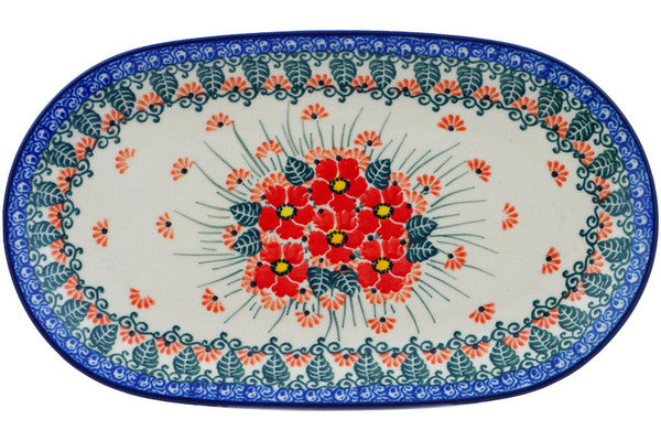 Oval Platter 10" Pink Forget Me Not Theme UNIKAT