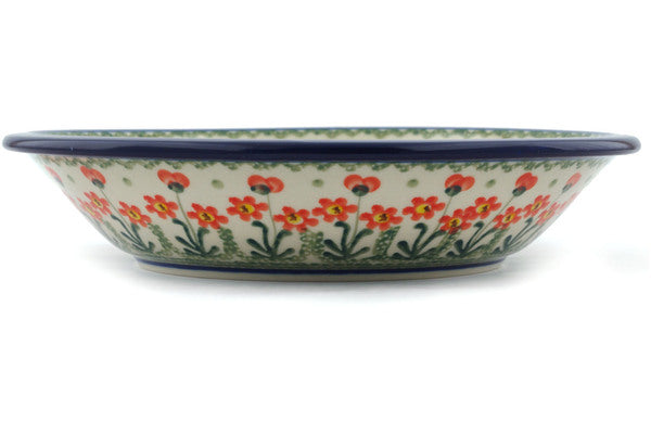 This Peach Spring Daisy 8" Pasta Bowl was handmade and hand decorated in Boleslawiec, Poland by skilled artisans according to old traditional methods. This Polish stoneware is microwave, dishwasher, freezer, and oven safe up to 480°F. It does not contain lead or cadmium. It is part of the Peach Spring Daisy Collection.