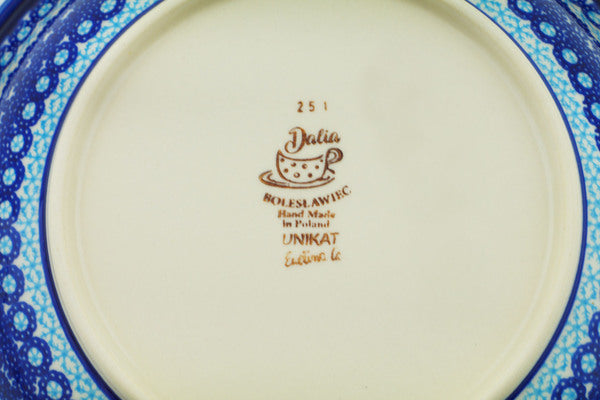 This Cobalt Winter Frost 9" Pasta Bowl was handmade and hand decorated in Boleslawiec, Poland by skilled artisans according to old traditional methods. This is a Polish pottery Signature Unikat, which means that it has been hand painted with both sponges and brushes and it is signed by the artist who painted it. Unikat pieces are the most intricate works of art. Larger Unikat items take hours of very careful work to finish. This Polish stoneware is microwave, dishwasher, freezer, and oven safe up to 480°F. It does not contain lead or cadmium. It is part of the Cobalt Winter Frost Collection.
