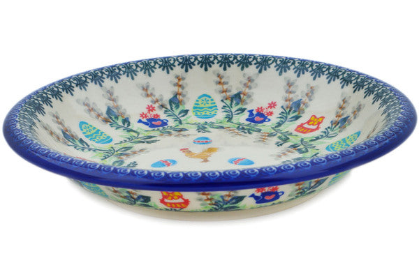 This Egg Finding 9" Pasta Bowl was handmade and hand decorated in Boleslawiec, Poland by skilled artisans according to old traditional methods. This is a Polish pottery Signature Unikat, which means that it has been hand painted with both sponges and brushes and it is signed by the artist who painted it. Unikat pieces are the most intricate works of art. Larger Unikat items take hours of very careful work to finish. This Polish stoneware is microwave, dishwasher, freezer, and oven safe up to 480°F. It does not contain lead or cadmium. It is part of the Egg Finding Collection.