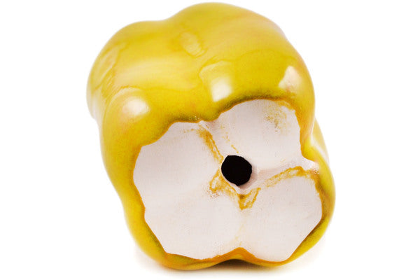 This Yellow 5" Pepper Figurine was handmade and hand decorated in Boleslawiec, Poland by skilled artisans according to old traditional methods. This Polish stoneware is microwave, dishwasher, freezer, and oven safe up to 480°F. It does not contain lead or cadmium. It is part of the Yellow Collection.