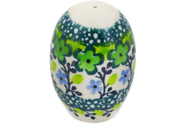 This Green Chrysanthemums 2" Pepper Shaker was handmade and hand decorated in Boleslawiec, Poland by skilled artisans according to old traditional methods. This is a Polish pottery Signature Unikat, which means that it has been hand painted with both sponges and brushes and it is signed by the artist who painted it. Unikat pieces are the most intricate works of art. Larger Unikat items take hours of very careful work to finish. This Polish stoneware is microwave, dishwasher, freezer, and oven safe up to 480°F. It does not contain lead or cadmium. It is part of the Green Chrysanthemums Collection.