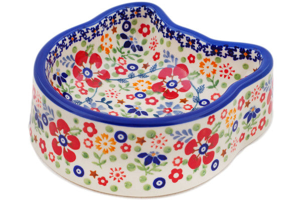This Botanical Sprinkles 7" Pet Bowl was handmade and hand decorated in Boleslawiec, Poland by skilled artisans according to old traditional methods. This is a Polish pottery Signature Unikat, which means that it has been hand painted with both sponges and brushes and it is signed by the artist who painted it. Unikat pieces are the most intricate works of art. Larger Unikat items take hours of very careful work to finish. This Polish stoneware is microwave, dishwasher, freezer, and oven safe up to 480°F. It does not contain lead or cadmium. It is part of the Botanical Sprinkles Collection.
