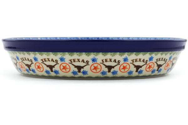 This State Of Texas 10" Pie Dish was handmade and hand decorated in Boleslawiec, Poland by skilled artisans according to old traditional methods. This Polish stoneware is microwave, dishwasher, freezer, and oven safe up to 480°F. It does not contain lead or cadmium. It is part of the State Of Texas Collection.