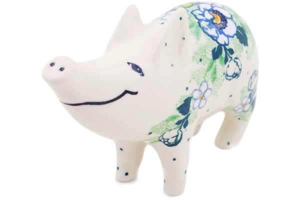 This Into Spring 5" Pig Figurine was handmade and hand decorated in Boleslawiec, Poland by skilled artisans according to old traditional methods. This Polish stoneware is microwave, dishwasher, freezer, and oven safe up to 480°F. It does not contain lead or cadmium. It is part of the Into Spring Collection.