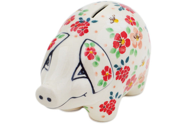 This Pink Divinity 5" Piggy Bank was handmade and hand decorated in Boleslawiec, Poland by skilled artisans according to old traditional methods. This is a Polish pottery Signature Unikat, which means that it has been hand painted with both sponges and brushes and it is signed by the artist who painted it. Unikat pieces are the most intricate works of art. Larger Unikat items take hours of very careful work to finish. This Polish stoneware is microwave, dishwasher, freezer, and oven safe up to 480°F. It does not contain lead or cadmium. It is part of the Pink Divinity Collection.