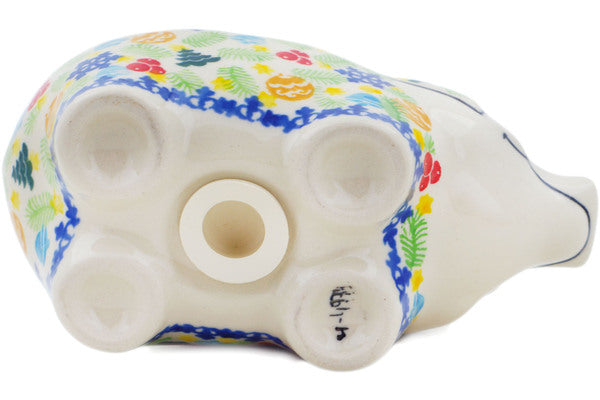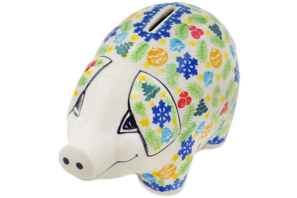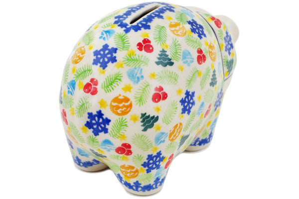 This Winter Sprinkles 5" Piggy Bank was handmade and hand decorated in Boleslawiec, Poland by skilled artisans according to old traditional methods. This is a Polish pottery Signature Unikat, which means that it has been hand painted with both sponges and brushes and it is signed by the artist who painted it. Unikat pieces are the most intricate works of art. Larger Unikat items take hours of very careful work to finish. This Polish stoneware is microwave, dishwasher, freezer, and oven safe up to 480°F. It does not contain lead or cadmium. It is part of the Winter Sprinkles Collection.