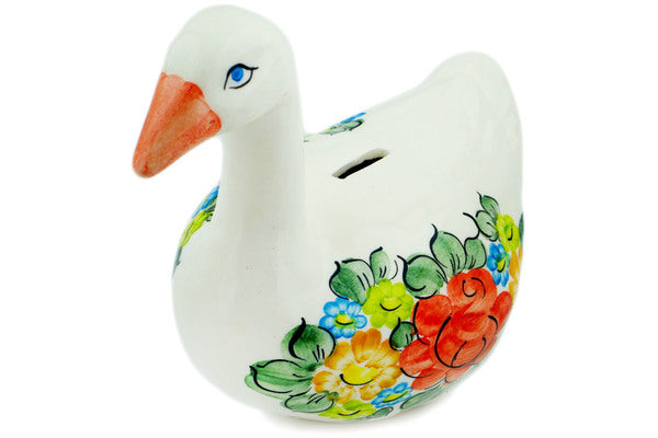 This Bountiful Burst 9" Piggy Bank was handmade and hand decorated in Boleslawiec, Poland by skilled artisans according to old traditional methods. This Polish stoneware is microwave, dishwasher, freezer, and oven safe up to 480°F. It does not contain lead or cadmium. It is part of the Bountiful Burst Collection.