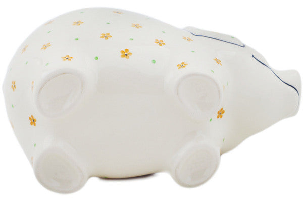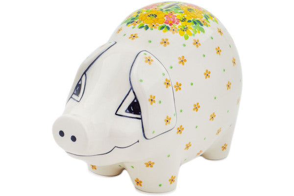 This Bright Spring 9" Piggy Bank was handmade and hand decorated in Boleslawiec, Poland by skilled artisans according to old traditional methods. This is a Polish pottery Signature Unikat, which means that it has been hand painted with both sponges and brushes and it is signed by the artist who painted it. Unikat pieces are the most intricate works of art. Larger Unikat items take hours of very careful work to finish. This Polish stoneware is microwave, dishwasher, freezer, and oven safe up to 480°F. It does not contain lead or cadmium. It is part of the Bright Spring Collection.