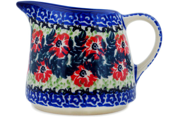 This Front Porch Blooms 9 oz Pitcher was handmade and hand decorated in Boleslawiec, Poland by skilled artisans according to old traditional methods. This Polish stoneware is microwave, dishwasher, freezer, and oven safe up to 480°F. It does not contain lead or cadmium. It is part of the Front Porch Blooms Collection.