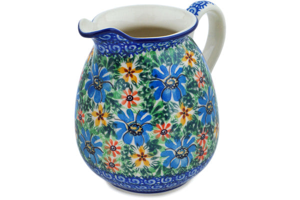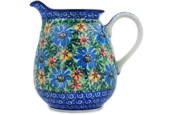 This Profusion 3½ cups Pitcher was handmade and hand decorated in Boleslawiec, Poland by skilled artisans according to old traditional methods. This is a Polish pottery Signature Unikat, which means that it has been hand painted with both sponges and brushes and it is signed by the artist who painted it. Unikat pieces are the most intricate works of art. Larger Unikat items take hours of very careful work to finish. This Polish stoneware is microwave, dishwasher, freezer, and oven safe up to 480°F. It does not contain lead or cadmium. It is part of the Profusion Collection.