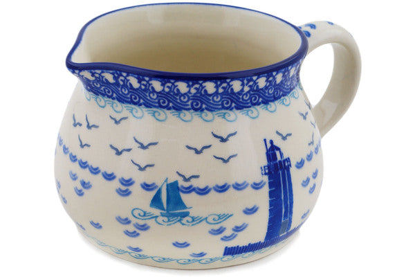 This Beach Day 34 oz Pitcher was handmade and hand decorated in Boleslawiec, Poland by skilled artisans according to old traditional methods. This is a Polish pottery Signature Unikat, which means that it has been hand painted with both sponges and brushes and it is signed by the artist who painted it. Unikat pieces are the most intricate works of art. Larger Unikat items take hours of very careful work to finish. This Polish stoneware is microwave, dishwasher, freezer, and oven safe up to 480°F. It does not contain lead or cadmium. It is part of the Beach Day Collection.