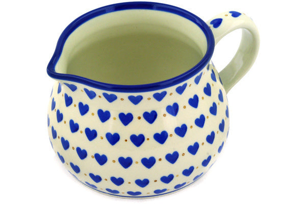 This Hearts Delight 34 oz Pitcher was handmade and hand decorated in Boleslawiec, Poland by skilled artisans according to old traditional methods. This Polish stoneware is microwave, dishwasher, freezer, and oven safe up to 480°F. It does not contain lead or cadmium. It is part of the Hearts Delight Collection.