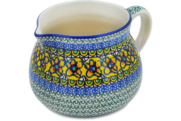 This Turkish Flowers 50 oz Pitcher was handmade and hand decorated in Boleslawiec, Poland by skilled artisans according to old traditional methods. This is a Polish pottery Signature Unikat, which means that it has been hand painted with both sponges and brushes and it is signed by the artist who painted it. Unikat pieces are the most intricate works of art. Larger Unikat items take hours of very careful work to finish. This Polish stoneware is microwave, dishwasher, freezer, and oven safe up to 480°F. It does not contain lead or cadmium. It is part of the Turkish Flowers Collection.