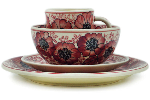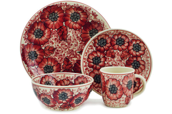 This Sugar Plum Poppies Place Setting was handmade and hand decorated in Boleslawiec, Poland by skilled artisans according to old traditional methods. This is a Polish pottery Signature Unikat, which means that it has been hand painted with both sponges and brushes and it is signed by the artist who painted it. Unikat pieces are the most intricate works of art. Larger Unikat items take hours of very careful work to finish. This Polish stoneware is microwave, dishwasher, freezer, and oven safe up to 480°F. It does not contain lead or cadmium. It is part of the Sugar Plum Poppies Collection.