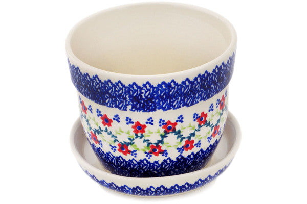 This Rings Of Happiness 5" Planter was handmade and hand decorated in Boleslawiec, Poland by skilled artisans according to old traditional methods. This Polish stoneware is microwave, dishwasher, freezer, and oven safe up to 480°F. It does not contain lead or cadmium. It is part of the Rings Of Happiness Collection.