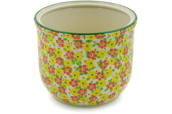 This Fertile Meadow 8" Planter was handmade and hand decorated in Boleslawiec, Poland by skilled artisans according to old traditional methods. This is a Polish pottery Signature Unikat, which means that it has been hand painted with both sponges and brushes and it is signed by the artist who painted it. Unikat pieces are the most intricate works of art. Larger Unikat items take hours of very careful work to finish. This Polish stoneware is microwave, dishwasher, freezer, and oven safe up to 480°F. It does not contain lead or cadmium. It is part of the Fertile Meadow Collection.