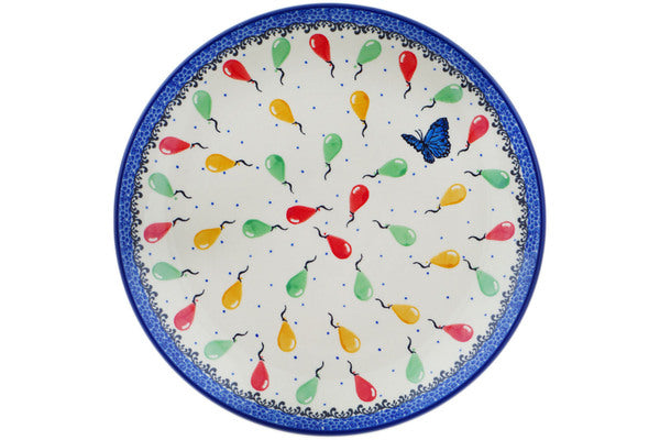 This Balloons 10" Plate was handmade and hand decorated in Boleslawiec, Poland by skilled artisans according to old traditional methods. This Polish stoneware is microwave, dishwasher, freezer, and oven safe up to 480°F. It does not contain lead or cadmium. It is part of the Balloons Collection.
