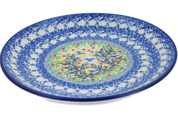 This Free Flock 10" Plate was handmade and hand decorated in Boleslawiec, Poland by skilled artisans according to old traditional methods. This is a Polish pottery Signature Unikat, which means that it has been hand painted with both sponges and brushes and it is signed by the artist who painted it. Unikat pieces are the most intricate works of art. Larger Unikat items take hours of very careful work to finish. This Polish stoneware is microwave, dishwasher, freezer, and oven safe up to 480°F. It does not contain lead or cadmium. It is part of the Free Flock Collection.