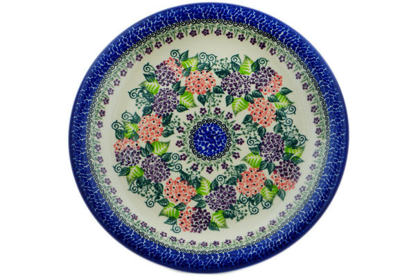 This Happy Hydrangea 10" Plate was handmade and hand decorated in Boleslawiec, Poland by skilled artisans according to old traditional methods. This is a Polish pottery Signature Unikat, which means that it has been hand painted with both sponges and brushes and it is signed by the artist who painted it. Unikat pieces are the most intricate works of art. Larger Unikat items take hours of very careful work to finish. This Polish stoneware is microwave, dishwasher, freezer, and oven safe up to 480°F. It does not contain lead or cadmium. It is part of the Happy Hydrangea Collection.