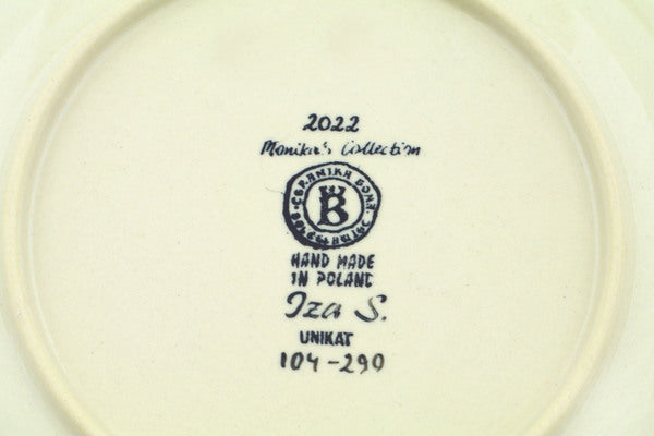 This Sugar Plum Poppies 10" Plate was handmade and hand decorated in Boleslawiec, Poland by skilled artisans according to old traditional methods. This is a Polish pottery Signature Unikat, which means that it has been hand painted with both sponges and brushes and it is signed by the artist who painted it. Unikat pieces are the most intricate works of art. Larger Unikat items take hours of very careful work to finish. This Polish stoneware is microwave, dishwasher, freezer, and oven safe up to 480°F. It does not contain lead or cadmium. It is part of the Sugar Plum Poppies Collection.