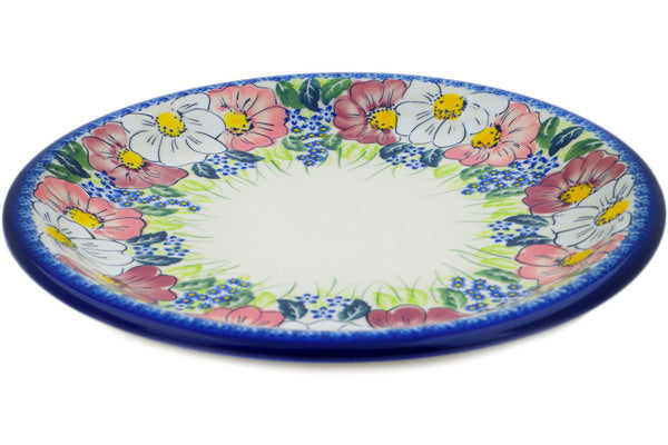 This Maroon Blossoms 13" Plate was handmade and hand decorated in Boleslawiec, Poland by skilled artisans according to old traditional methods. This is a Polish pottery Signature Unikat, which means that it has been hand painted with both sponges and brushes and it is signed by the artist who painted it. Unikat pieces are the most intricate works of art. Larger Unikat items take hours of very careful work to finish. This Polish stoneware is microwave, dishwasher, freezer, and oven safe up to 480°F. It does not contain lead or cadmium. It is part of the Maroon Blossoms Collection.