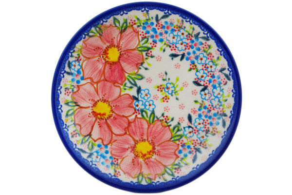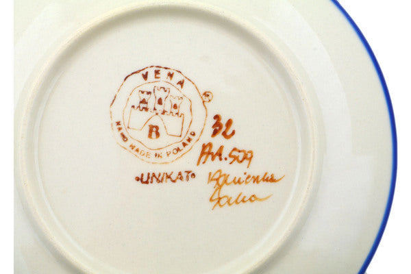 This Aster 7" Plate was handmade and hand decorated in Boleslawiec, Poland by skilled artisans according to old traditional methods. This is a Polish pottery Signature Unikat, which means that it has been hand painted with both sponges and brushes and it is signed by the artist who painted it. Unikat pieces are the most intricate works of art. Larger Unikat items take hours of very careful work to finish. This Polish stoneware is microwave, dishwasher, freezer, and oven safe up to 480°F. It does not contain lead or cadmium. It is part of the Aster Collection.