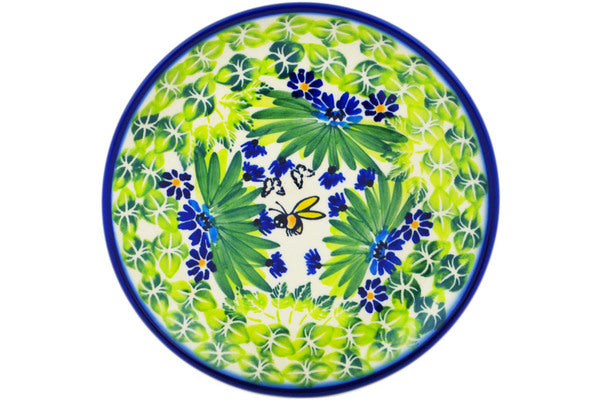 This Bees A'Buzz 7" Plate was handmade and hand decorated in Boleslawiec, Poland by skilled artisans according to old traditional methods. This is a Polish pottery Signature Unikat, which means that it has been hand painted with both sponges and brushes and it is signed by the artist who painted it. Unikat pieces are the most intricate works of art. Larger Unikat items take hours of very careful work to finish. This Polish stoneware is microwave, dishwasher, freezer, and oven safe up to 480°F. It does not contain lead or cadmium. It is part of the Bees A'Buzz Collection.