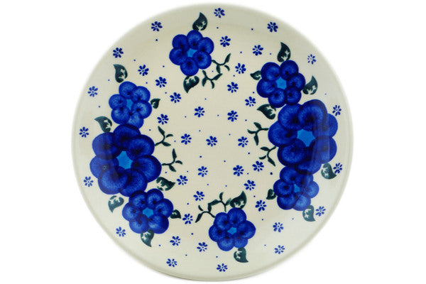 This Blue Winter Poppies 7½-inch Dessert Plate was handmade and hand decorated in Boleslawiec, Poland by skilled artisans according to old traditional methods. This Polish stoneware is microwave, dishwasher, freezer, and oven safe up to 480°F. It does not contain lead or cadmium. It is part of the Blue Winter Poppies Collection.