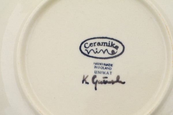 This Divine Blues 7" Plate was handmade and hand decorated in Boleslawiec, Poland by skilled artisans according to old traditional methods. This is a Polish pottery Signature Unikat, which means that it has been hand painted with both sponges and brushes and it is signed by the artist who painted it. Unikat pieces are the most intricate works of art. Larger Unikat items take hours of very careful work to finish. This Polish stoneware is microwave, dishwasher, freezer, and oven safe up to 480°F. It does not contain lead or cadmium. It is part of the Divine Blues Collection.