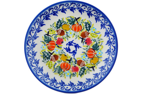 This Fruitful Vines 7" Plate was handmade and hand decorated in Boleslawiec, Poland by skilled artisans according to old traditional methods. This is a Polish pottery Signature Unikat, which means that it has been hand painted with both sponges and brushes and it is signed by the artist who painted it. Unikat pieces are the most intricate works of art. Larger Unikat items take hours of very careful work to finish. This Polish stoneware is microwave, dishwasher, freezer, and oven safe up to 480°F. It does not contain lead or cadmium. It is part of the Fruitful Vines Collection.
