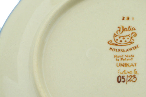 This Happy Hydrangea 7" Plate was handmade and hand decorated in Boleslawiec, Poland by skilled artisans according to old traditional methods. This is a Polish pottery Signature Unikat, which means that it has been hand painted with both sponges and brushes and it is signed by the artist who painted it. Unikat pieces are the most intricate works of art. Larger Unikat items take hours of very careful work to finish. This Polish stoneware is microwave, dishwasher, freezer, and oven safe up to 480°F. It does not contain lead or cadmium. It is part of the Happy Hydrangea Collection.