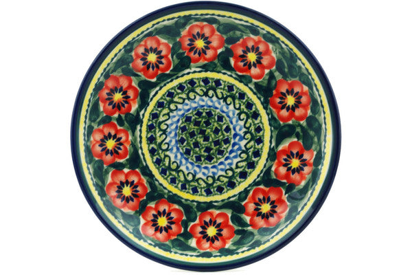 This Poppies All Around 7" Plate was handmade and hand decorated in Boleslawiec, Poland by skilled artisans according to old traditional methods. This is a Polish pottery Signature Unikat, which means that it has been hand painted with both sponges and brushes and it is signed by the artist who painted it. Unikat pieces are the most intricate works of art. Larger Unikat items take hours of very careful work to finish. This Polish stoneware is microwave, dishwasher, freezer, and oven safe up to 480°F. It does not contain lead or cadmium. It is part of the Poppies All Around Collection.