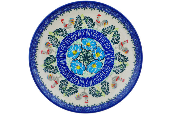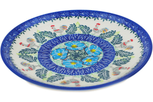 This Rooster's Crow 7" Plate was handmade and hand decorated in Boleslawiec, Poland by skilled artisans according to old traditional methods. This is a Polish pottery Signature Unikat, which means that it has been hand painted with both sponges and brushes and it is signed by the artist who painted it. Unikat pieces are the most intricate works of art. Larger Unikat items take hours of very careful work to finish. This Polish stoneware is microwave, dishwasher, freezer, and oven safe up to 480°F. It does not contain lead or cadmium. It is part of the Rooster's Crow Collection.