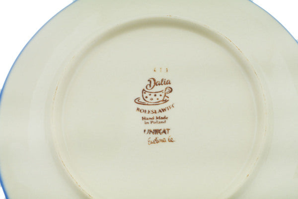 This Sunflower 7" Plate was handmade and hand decorated in Boleslawiec, Poland by skilled artisans according to old traditional methods. This is a Polish pottery Signature Unikat, which means that it has been hand painted with both sponges and brushes and it is signed by the artist who painted it. Unikat pieces are the most intricate works of art. Larger Unikat items take hours of very careful work to finish. This Polish stoneware is microwave, dishwasher, freezer, and oven safe up to 480°F. It does not contain lead or cadmium. It is part of the Sunflower Collection.