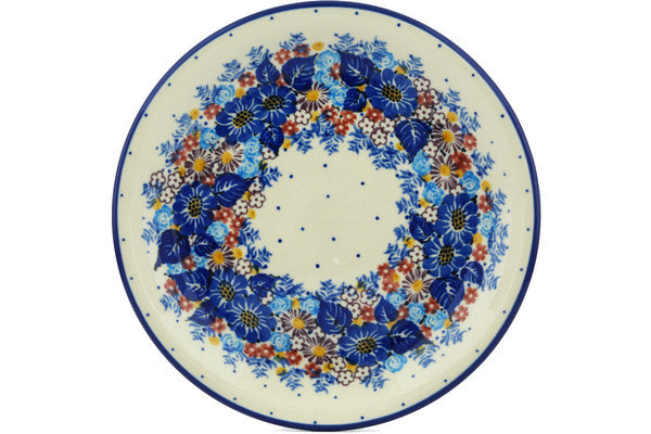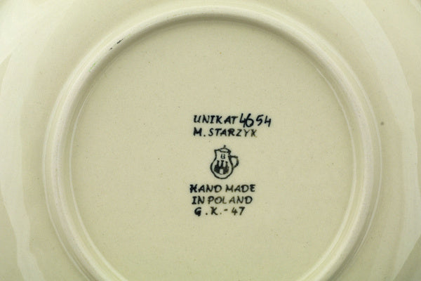 This Flower Wreath 8" Plate was handmade and hand decorated in Boleslawiec, Poland by skilled artisans according to old traditional methods. This is a Polish pottery Signature Unikat, which means that it has been hand painted with both sponges and brushes and it is signed by the artist who painted it. Unikat pieces are the most intricate works of art. Larger Unikat items take hours of very careful work to finish. This Polish stoneware is microwave, dishwasher, freezer, and oven safe up to 480°F. It does not contain lead or cadmium. It is part of the Flower Wreath Collection.
