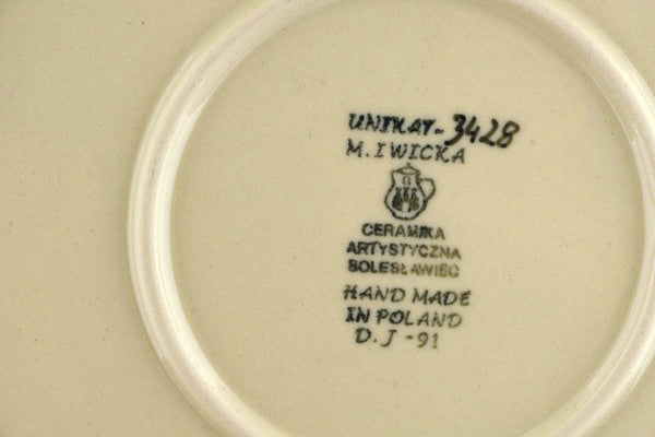 This Temptation 9" Plate was handmade and hand decorated in Boleslawiec, Poland by skilled artisans according to old traditional methods. This is a Polish pottery Signature Unikat, which means that it has been hand painted with both sponges and brushes and it is signed by the artist who painted it. Unikat pieces are the most intricate works of art. Larger Unikat items take hours of very careful work to finish. This Polish stoneware is microwave, dishwasher, freezer, and oven safe up to 480°F. It does not contain lead or cadmium. It is part of the Temptation Collection.