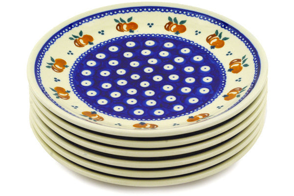 This Country Apple Peacock Set of 6 Plates was handmade and hand decorated in Boleslawiec, Poland by skilled artisans according to old traditional methods. This Polish stoneware is microwave, dishwasher, freezer, and oven safe up to 480°F. It does not contain lead or cadmium. It is part of the Country Apple Peacock Collection.