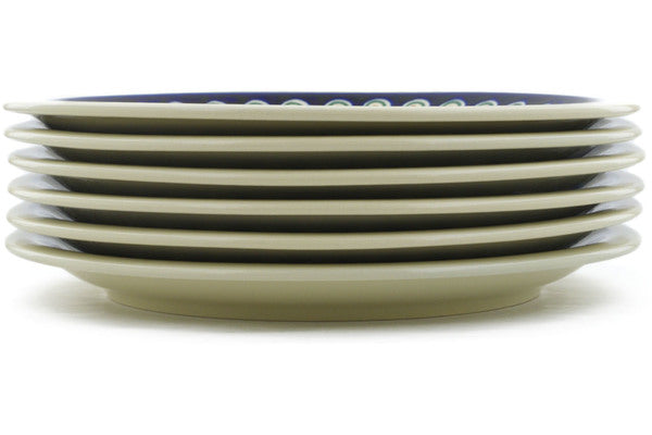This Peacock Christmas Set of 6 Plates was handmade and hand decorated in Boleslawiec, Poland by skilled artisans according to old traditional methods. This Polish stoneware is microwave, dishwasher, freezer, and oven safe up to 480°F. It does not contain lead or cadmium. It is part of the Peacock Christmas Collection.