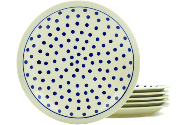 This Polka Dot Set of 6 Plates was handmade and hand decorated in Boleslawiec, Poland by skilled artisans according to old traditional methods. This Polish stoneware is microwave, dishwasher, freezer, and oven safe up to 480°F. It does not contain lead or cadmium. It is part of the Polka Dot Collection.