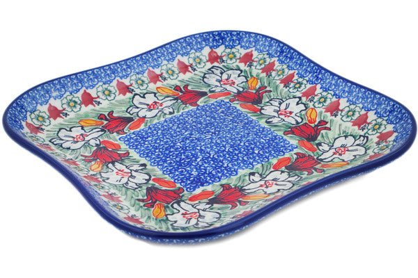 This Scarlet Flora 10" Platter was handmade and hand decorated in Boleslawiec, Poland by skilled artisans according to old traditional methods. This is a Polish pottery Signature Unikat, which means that it has been hand painted with both sponges and brushes and it is signed by the artist who painted it. Unikat pieces are the most intricate works of art. Larger Unikat items take hours of very careful work to finish. This Polish stoneware is microwave, dishwasher, freezer, and oven safe up to 480°F. It does not contain lead or cadmium. It is part of the Scarlet Flora Collection.