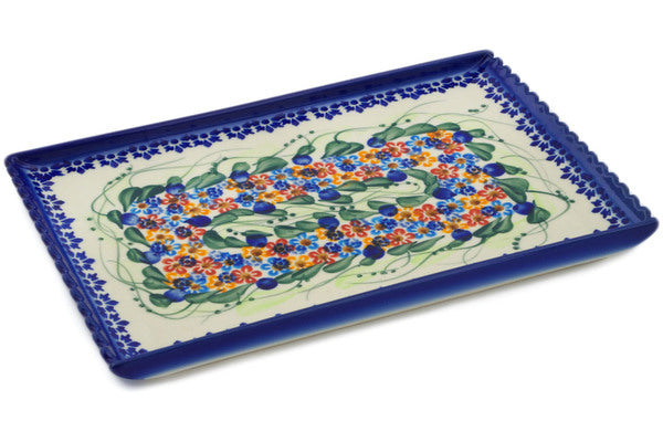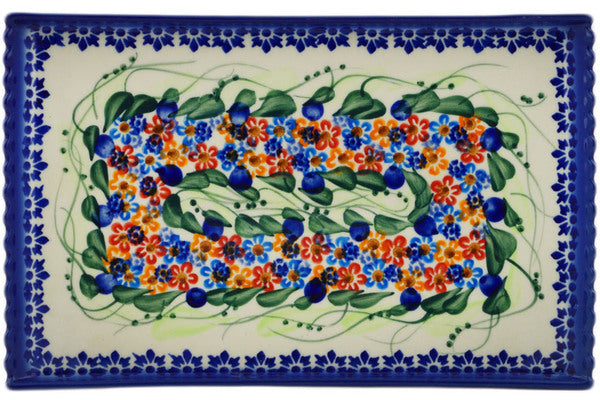 This Starburst Garland 10" Platter was handmade and hand decorated in Boleslawiec, Poland by skilled artisans according to old traditional methods. This is a Polish pottery Signature Unikat, which means that it has been hand painted with both sponges and brushes and it is signed by the artist who painted it. Unikat pieces are the most intricate works of art. Larger Unikat items take hours of very careful work to finish. This Polish stoneware is microwave, dishwasher, freezer, and oven safe up to 480°F. It does not contain lead or cadmium. It is part of the Starburst Garland Collection.