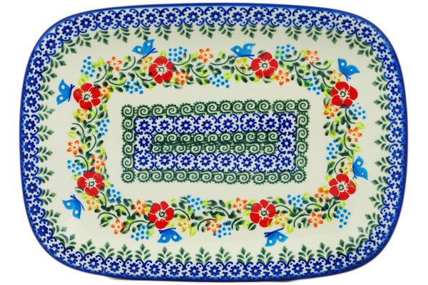 This Ring Of Meadow Flowers 11" Platter was handmade and hand decorated in Boleslawiec, Poland by skilled artisans according to old traditional methods. This Polish stoneware is microwave, dishwasher, freezer, and oven safe up to 480°F. It does not contain lead or cadmium. It is part of the Ring Of Meadow Flowers Collection.