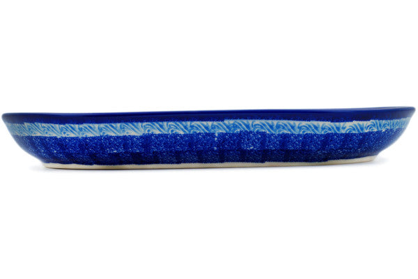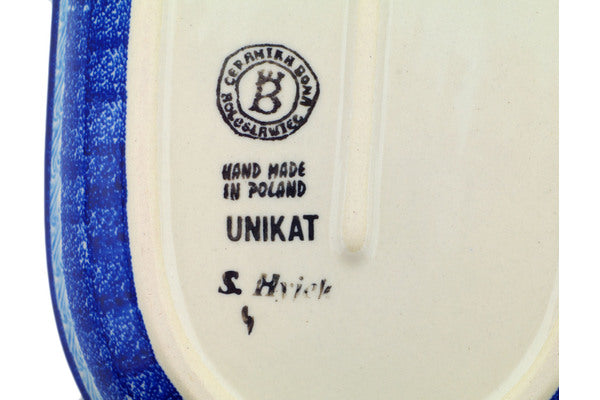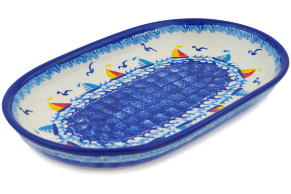 This Sailing Through Your Dreams 11" Platter was handmade and hand decorated in Boleslawiec, Poland by skilled artisans according to old traditional methods. This Polish stoneware is microwave, dishwasher, freezer, and oven safe up to 480°F. It does not contain lead or cadmium. It is part of the Sailing Through Your Dreams Collection.