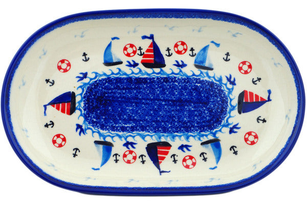 This Sweet Sailboats 11" Platter was handmade and hand decorated in Boleslawiec, Poland by skilled artisans according to old traditional methods. This Polish stoneware is microwave, dishwasher, freezer, and oven safe up to 480°F. It does not contain lead or cadmium. It is part of the Sweet Sailboats Collection.