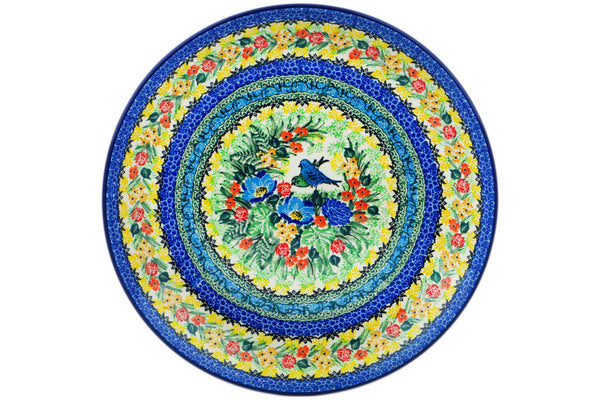 This Blue Bird Delight 12" Platter was handmade and hand decorated in Boleslawiec, Poland by skilled artisans according to old traditional methods. This is a Polish pottery Signature Unikat, which means that it has been hand painted with both sponges and brushes and it is signed by the artist who painted it. Unikat pieces are the most intricate works of art. Larger Unikat items take hours of very careful work to finish. This Polish stoneware is microwave, dishwasher, freezer, and oven safe up to 480°F. It does not contain lead or cadmium. It is part of the Blue Bird Delight Collection.