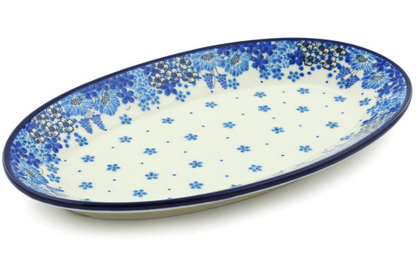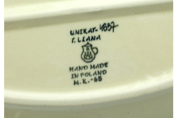 This Morning Glory 12" Platter was handmade and hand decorated in Boleslawiec, Poland by skilled artisans according to old traditional methods. This is a Polish pottery Signature Unikat, which means that it has been hand painted with both sponges and brushes and it is signed by the artist who painted it. Unikat pieces are the most intricate works of art. Larger Unikat items take hours of very careful work to finish. This Polish stoneware is microwave, dishwasher, freezer, and oven safe up to 480°F. It does not contain lead or cadmium. It is part of the Morning Glory Collection.