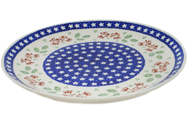 This Sleigh Bells 12" Platter was handmade and hand decorated in Boleslawiec, Poland by skilled artisans according to old traditional methods. This Polish stoneware is microwave, dishwasher, freezer, and oven safe up to 480°F. It does not contain lead or cadmium. It is part of the Sleigh Bells Collection.