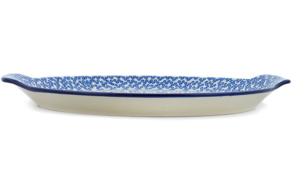 This Blowing Bubbles 13" Platter was handmade and hand decorated in Boleslawiec, Poland by skilled artisans according to old traditional methods. This Polish stoneware is microwave, dishwasher, freezer, and oven safe up to 480°F. It does not contain lead or cadmium. It is part of the Blowing Bubbles Collection.