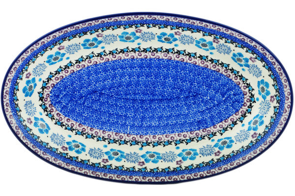 This Blooming Blues 14" Platter was handmade and hand decorated in Boleslawiec, Poland by skilled artisans according to old traditional methods. This Polish stoneware is microwave, dishwasher, freezer, and oven safe up to 480°F. It does not contain lead or cadmium. It is part of the Blooming Blues Collection.